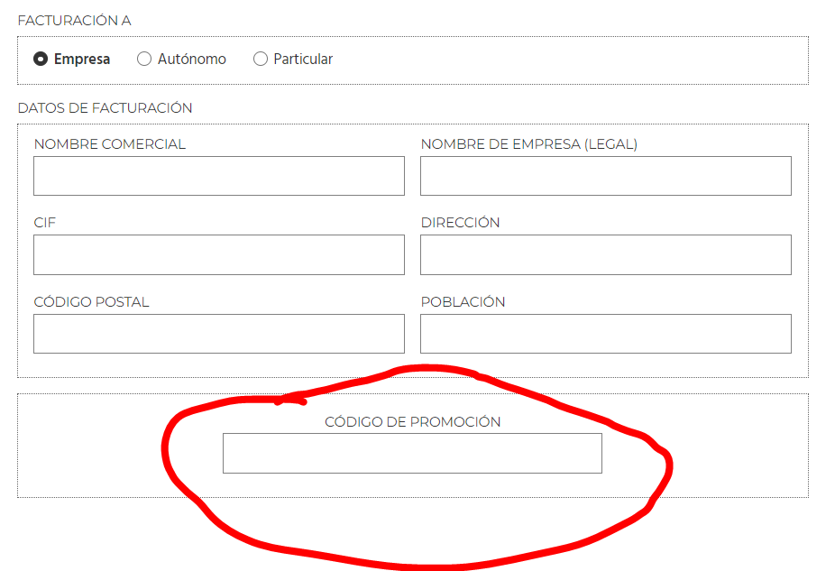 PASO 2. RELLENA TUS DATOS, SELECCIONA PLAN EMPRESA E INTRODUCE EL CODIGO 20EMPRESA EN EL APARTADO CODIGO DE PROMOCION